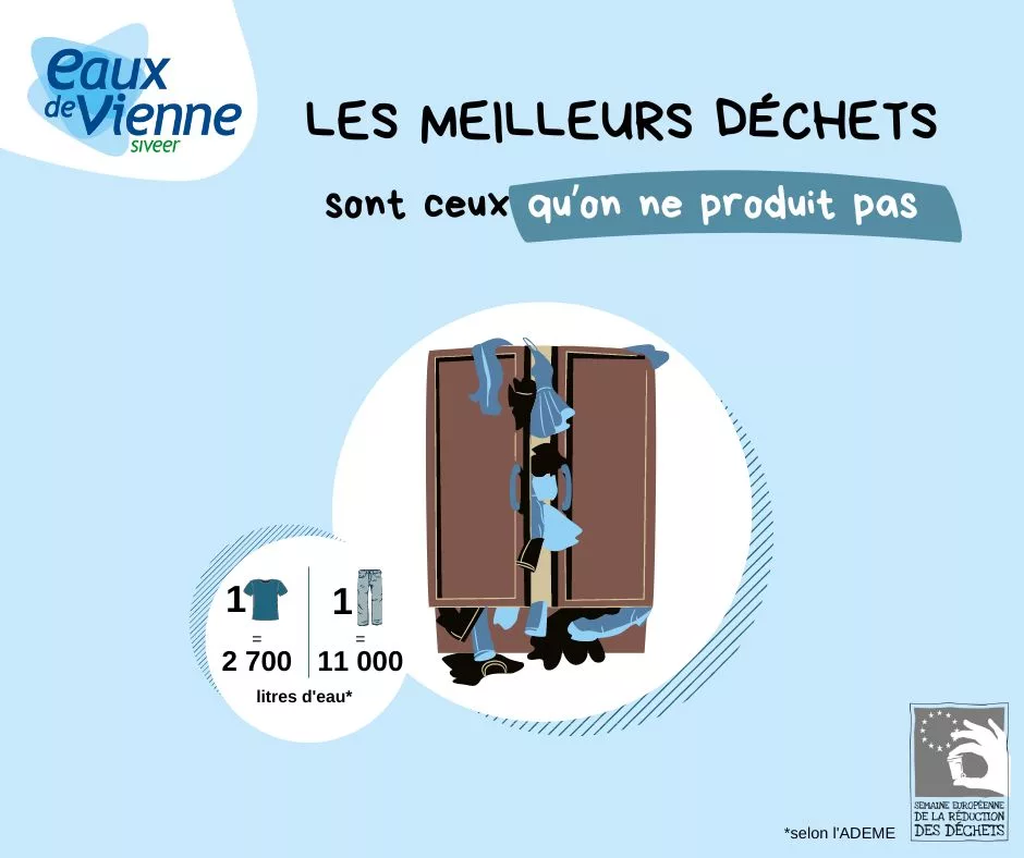 👉 Eaux de Vienne sera présent, le 19 novembre à Civray et le 26 novembre à Queaux pour les animations coordonnées par le SIMER autour de la Semaine européenne de réduction des déchets ! En savoir plus ici