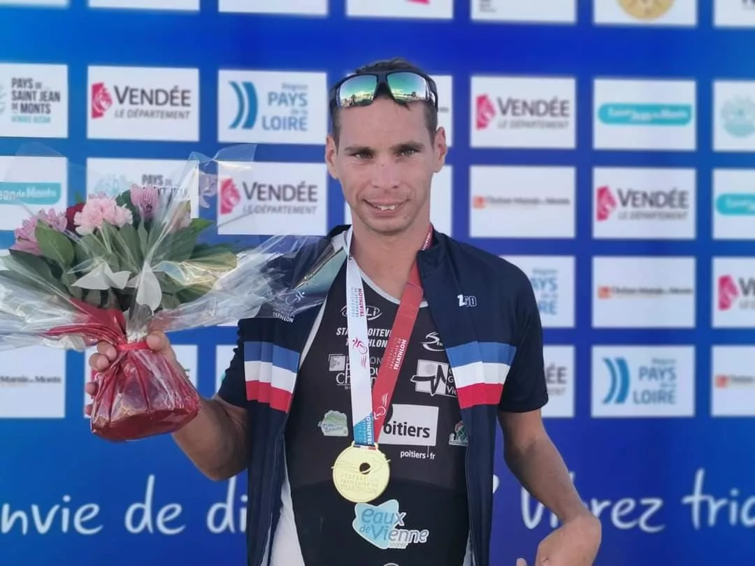 Geoffrey Wersy, agent du service patrimoine d’Eaux de Vienne, a décroché la médaille d’or de paratriathlon à Saint-Jean de Monts, en Vendée, le week-end dernier.