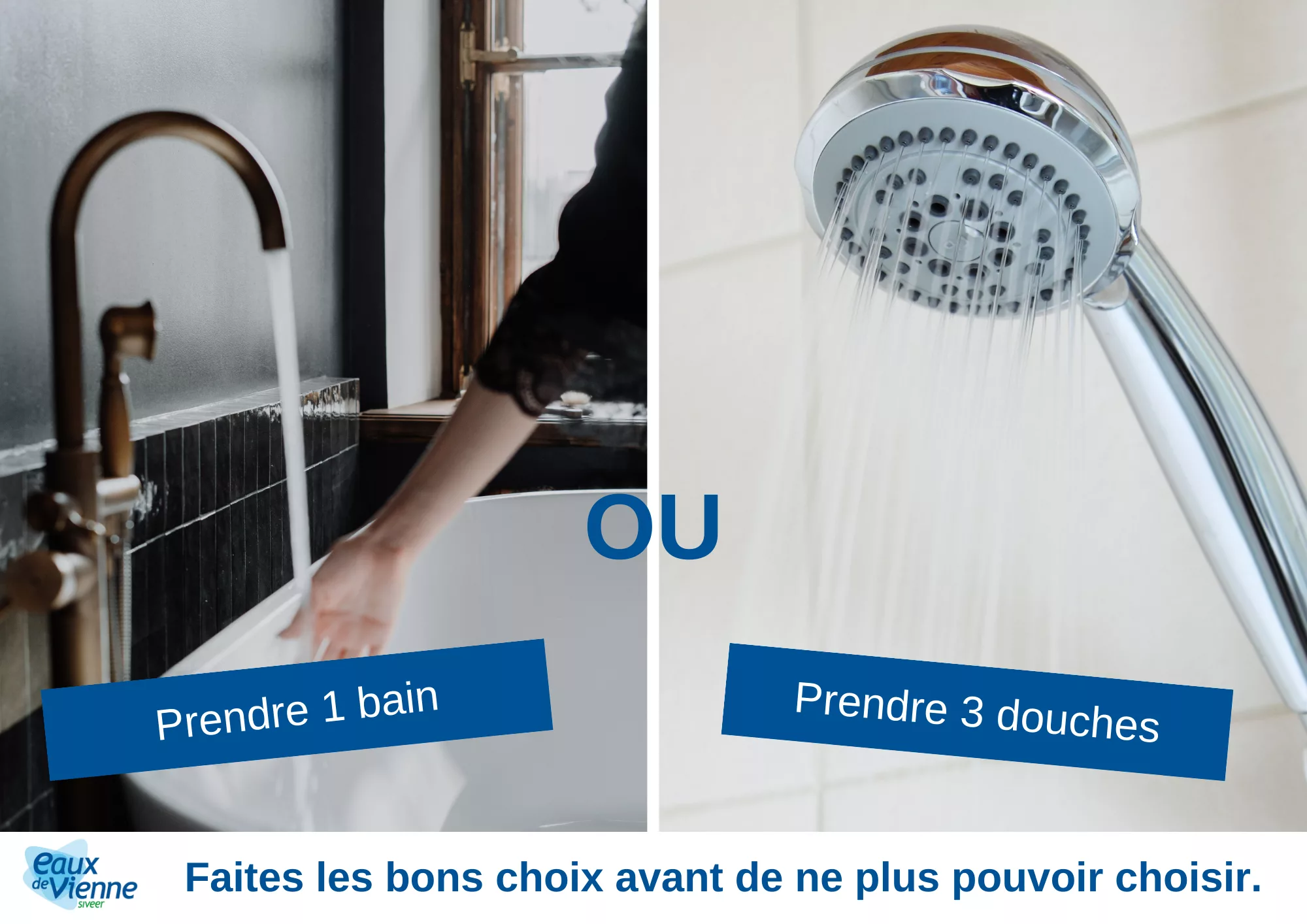 En cette période de sécheresse, privilégiez les douches aux bains, à condition de ne pas rester trop longtemps sous la douche et à fermer le robinet lorsque vous vous savonnez !